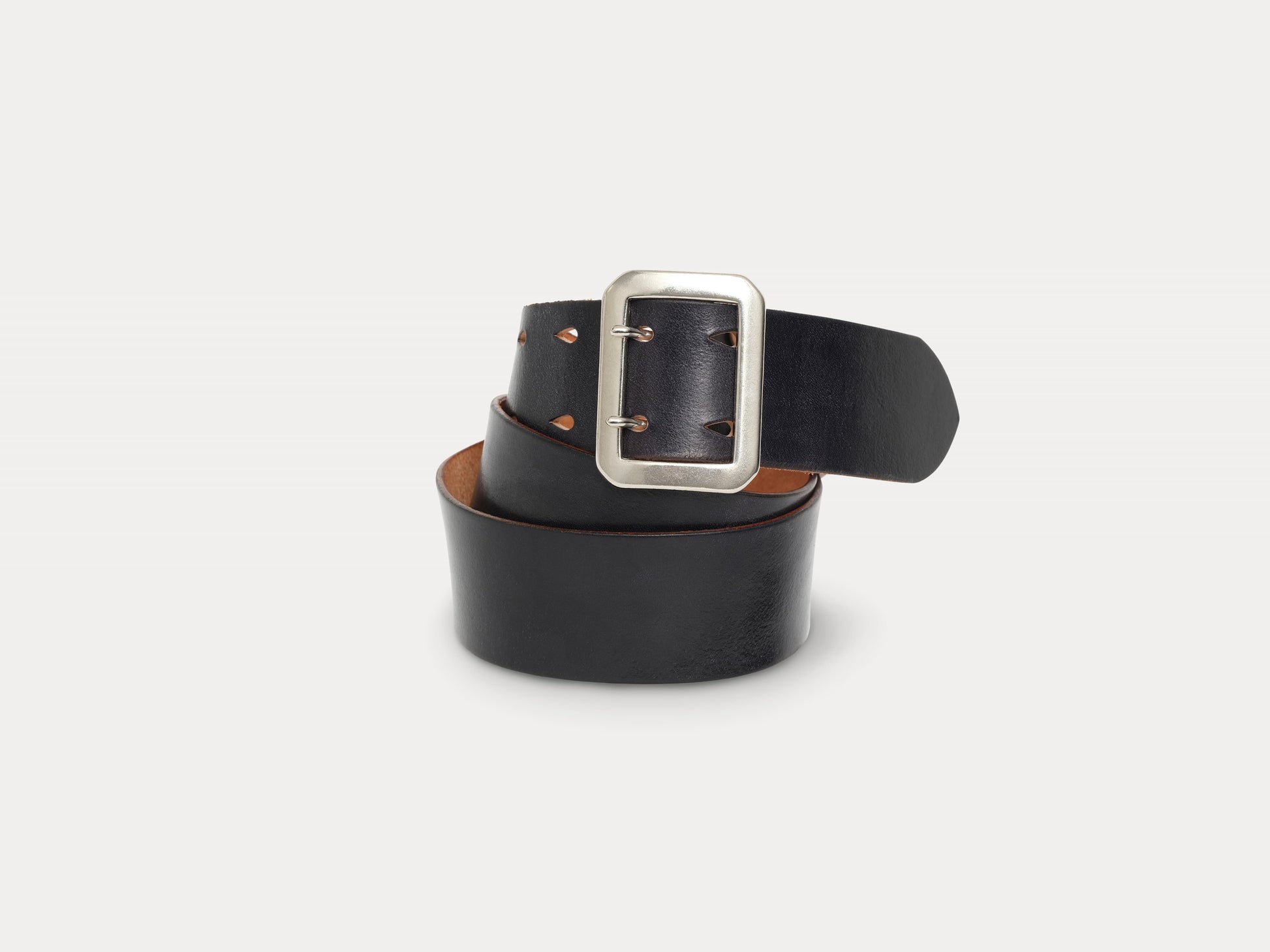 Inspired by U.S. military and civilian work belts from the Great Depression era. The Garrison is cut from thick, full-grain leather and finished with a durable steel double-prong buckle. Originally worn by soldiers and labourers, the garrison belt has crossed over from uniforms to civilian workwear and sportswear, often worn with wool trousers, denim, or military garments.