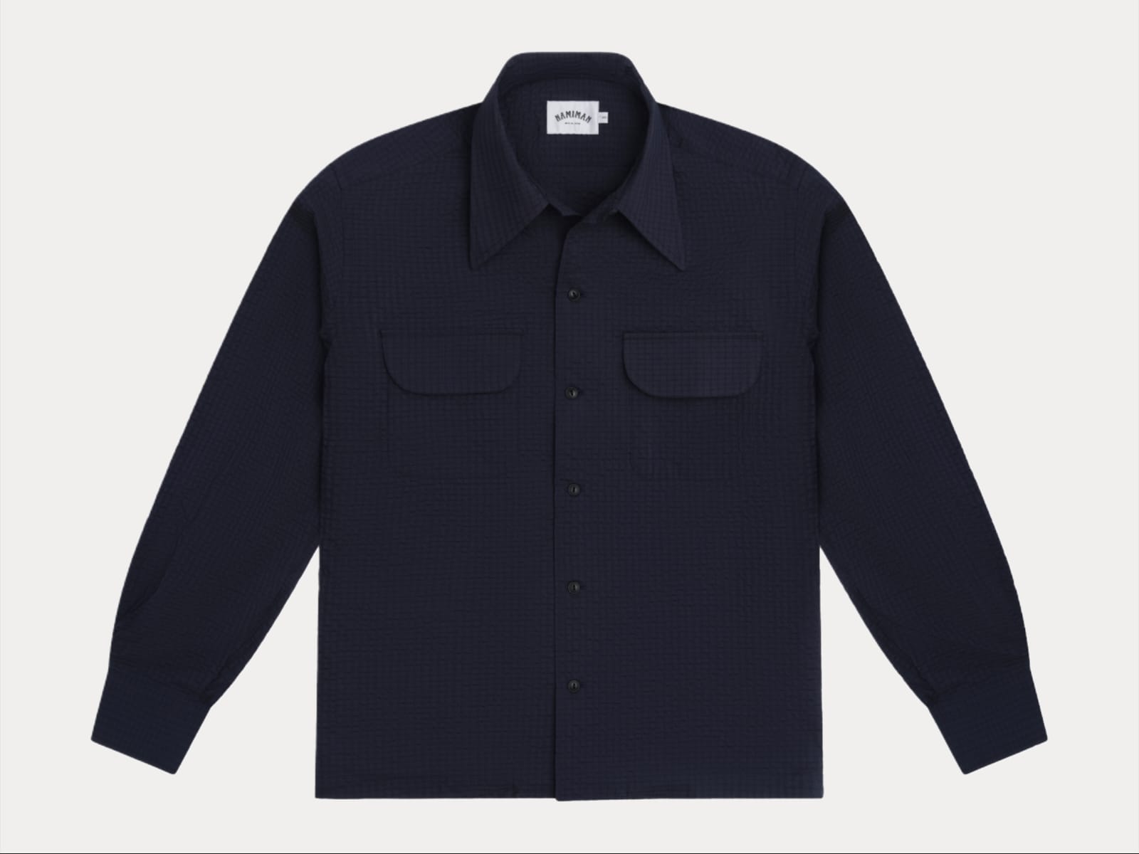 Our 1940s style sport shirt with a spearpoint and loop collar. A relaxed fit through the body and worn tucked or untucked.