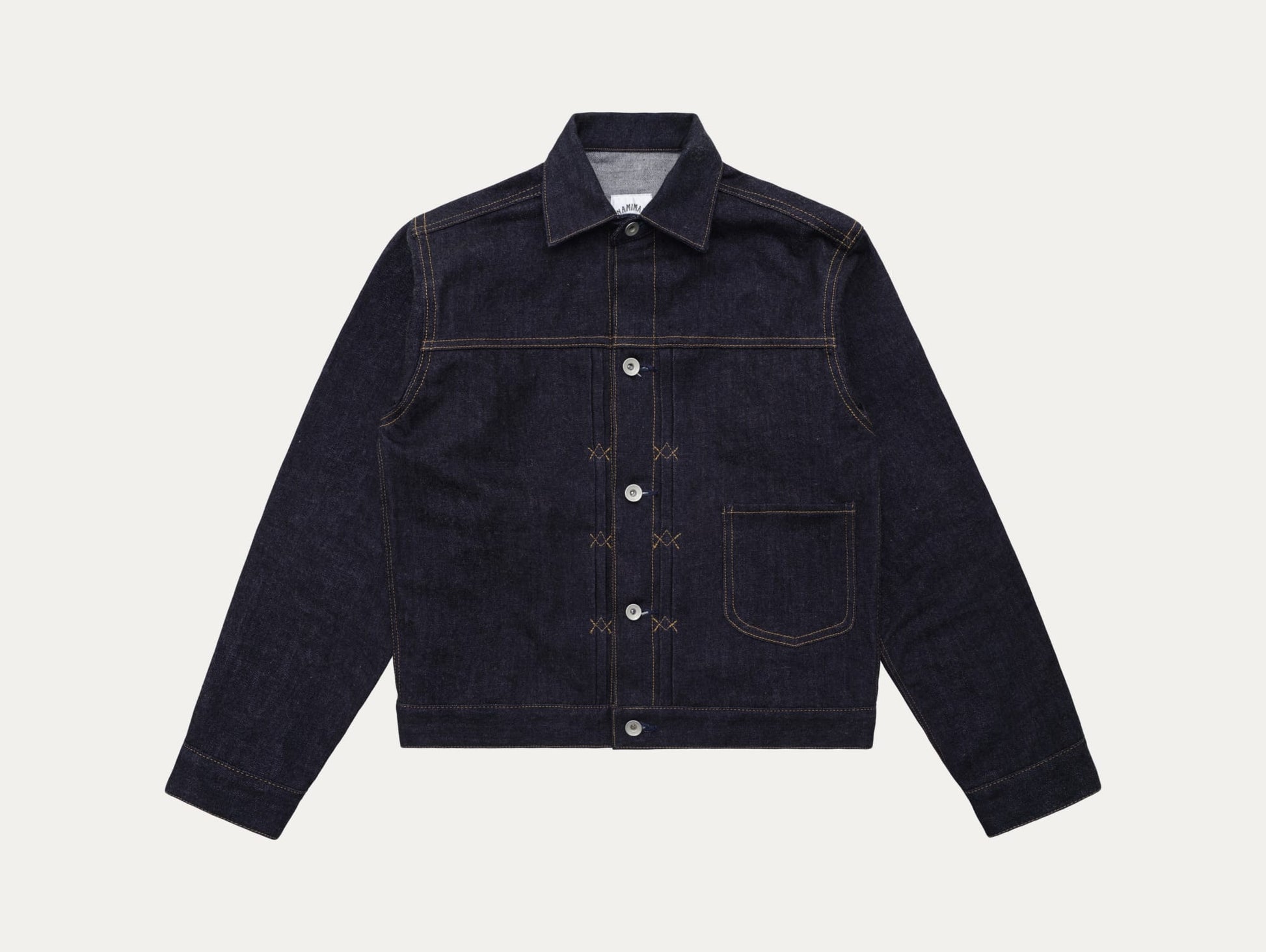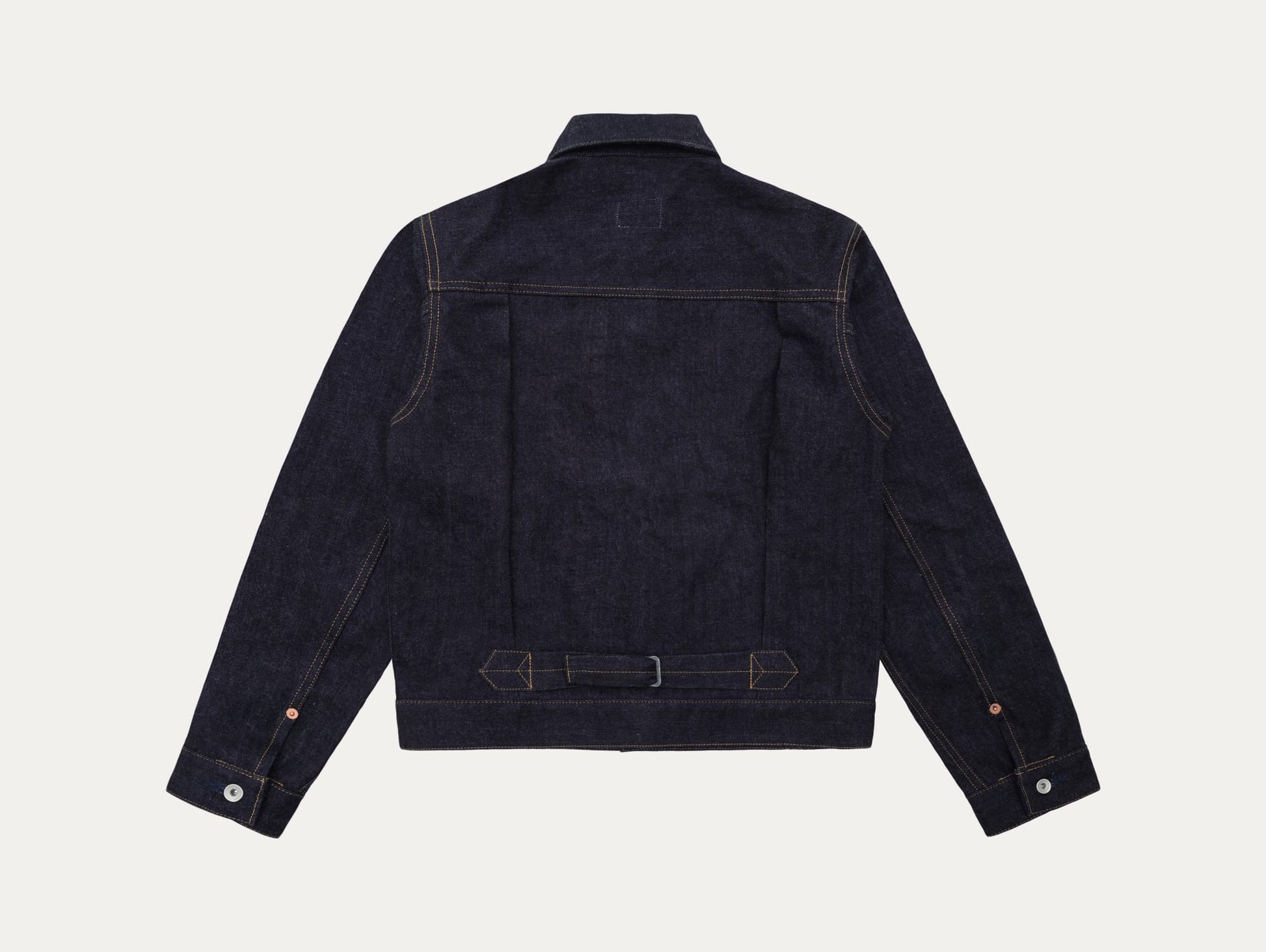 Similar to the Lot.211XX, the Type-1 features contrasting copper rivets with antique nickel buttons.